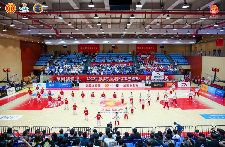 开幕式后,揭幕战在安踏集团与利郎集团的职工球队间展开。两队球员身着标志性队服,将生产线上的默契转化为赛场上的战术配合,用精彩激烈的对决打响本次企BA联赛第一战!